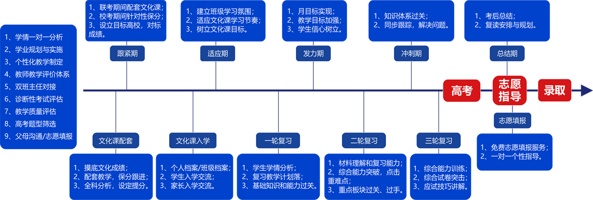 | 师资配置 | 1)由教学校长重点把关教学;2)由带重本经验丰富的班主任和教学骨干教师任教。 | 点击咨询 |